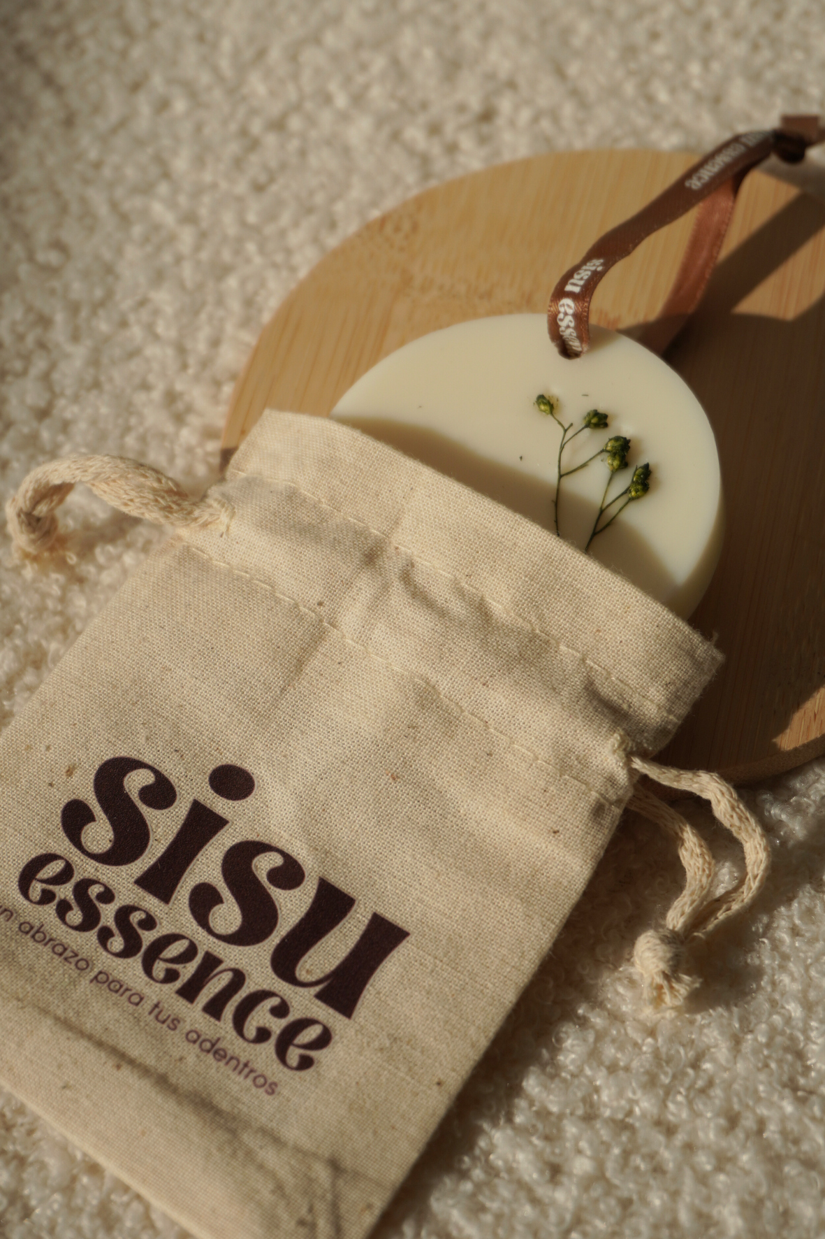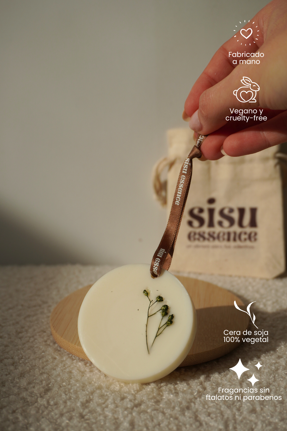 Usa la cinta de algodón para colgar el ambientador en una percha o en la barra del armario. Así, la fragancia se irá dispersando poco a poco, de forma suave y constante.