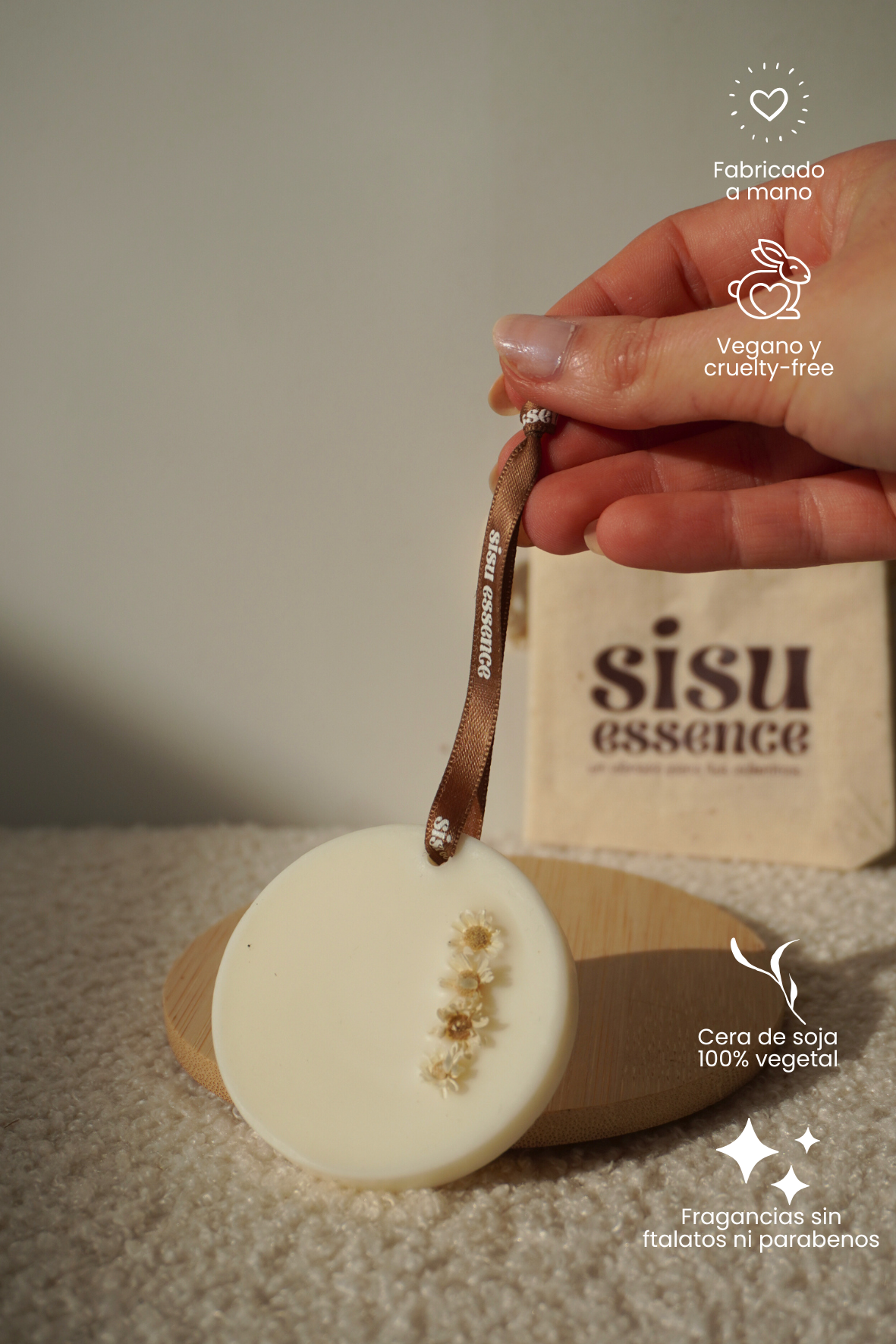 El ambientador está hecho a mano en nuestro taller, con mucha calma y amor. Lo fabricamos con cera de soja 100% vegetal, y colocamos las flores una a una con delicadeza.